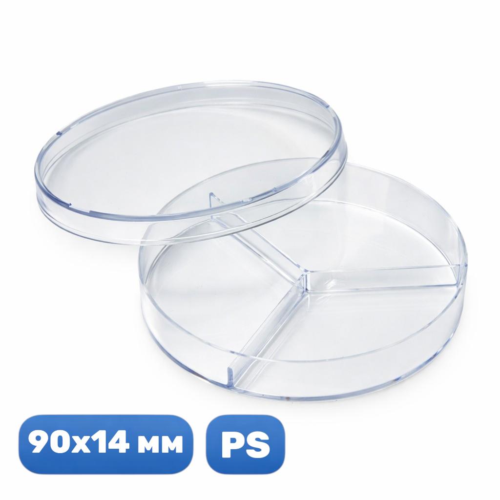 Чашка Петри 90/14 мм, п/с, 3-х секц., стерил., 20 шт/упак, IT. предназначена для культивирования, разделения, наблюдения и сравнительного анализа микроорганизмов, клеточных культур и биологических образцов в лабораторных условиях. Чашка Петри с азделительными секциями удобна для одновременной работы с несколькими пробами или питательными средами в пределах одной емкости.