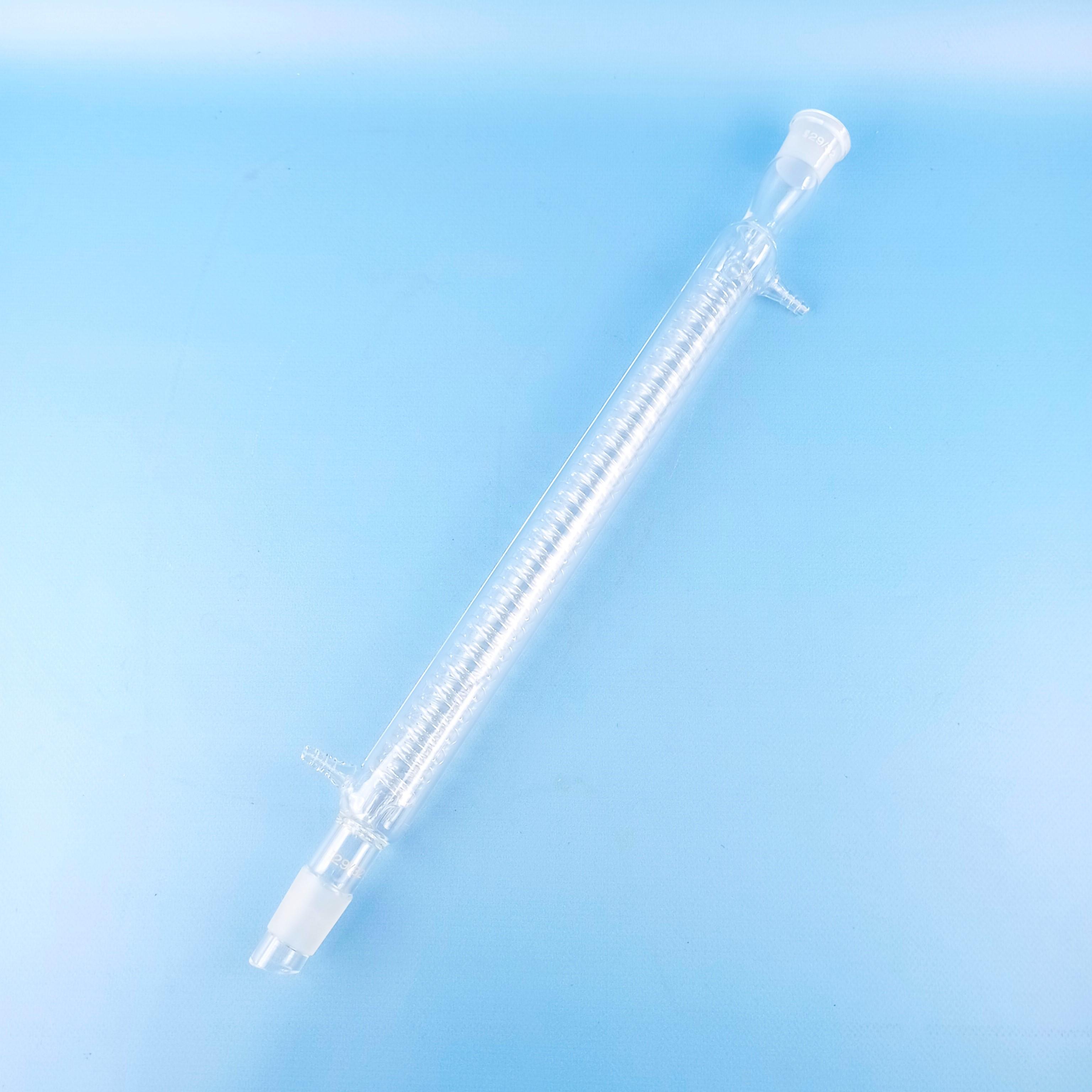 Холодильник спиральный 5drops, Boro 3.3, ХСВ-400 мм, шлифы 29/32-29/32. используется в лабораторных исследованиях и промышленности при конденсации паров с их охлаждением для последующего перехода в жидкую форму. Спиральный холодильник состоит из стеклянной внешней трубки с помещённой внутрь спиралью, его корпус оснащён двумя впаянными отводами. Он выполнен из особо прочного лабораторного стекла, поэтому имеет меньшие размеры и лучшие теплотехнические характеристики в отличие от металлических дистилляторов.