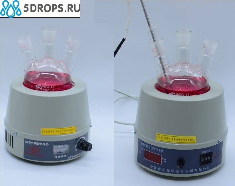 Колбонагреватель - специальный прибор, предназначенный для нагрева растворов, смесей, проб и образцов, содержащихся в стандартных круглодонных химических колбах. В зависимости от объёма применяемой круглодонной колбы варьирует и размер нагревателей. Среди ощутимых плюсов представленного прибора можно выделить предельную простоту и удобство при необходимости нагреть какие-либо вещества без использования водяной бани или плитки, кроме того использование сферического нагревательного элемента (в отличии от плоской поверхности плиты) гарантирует равномерный прогрев и достижение одной температуры во всём объёме жидкости. В модель с цифровой установкой температуры включён передовой микроконтроллер, позволяющий регулировать скорость и мощность нагрева прибора. Колбонагреватели больших объёмов могут быть использованы в качестве нагревательных установок для стеклянных перегонных кубов в виде круглодонных колб на 5 и 10 литров при проведении процессов перегонки и дистилляции. Для нагрева веществ могут применяться не только круглодонные колбы, но и плоскодонные, конические, мерные, а также лабораторные стаканы низкие и высокие. Единственные требования к посуде - диаметр дна должен быть меньше диаметра горловины колбонагревателя, а также допускаемый материал изготовления - термостойкое химическое стекло.