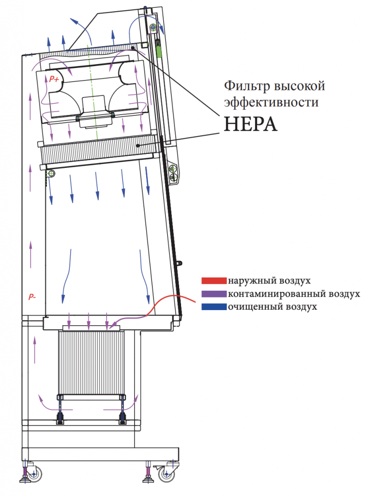 1. Боксы защиты продукта («clean bench»), PCR-шкафы, ламинарные шкафы вертикального/горизонтального потока) - защищают только материал внутри. Воздух не проходит обратно в помещение, но и не фильтруется перед выбросом.