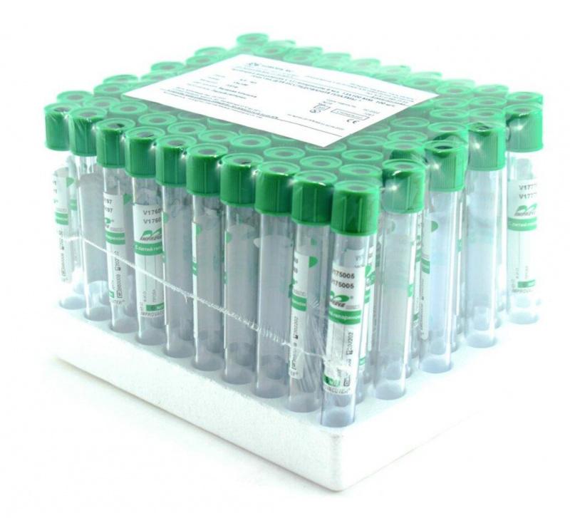 Вакуумные пробирки для исследования плазмы с литий-гепарином - широко используемые в практике клинико-диагностических лабораторий при исследованиях биохимических показателей и показателей клеточного иммунитета пробирки. Антикоагулянт (литий-гепарин) в сухом виде нанесен на внутреннюю стенку пробирки. Основное действие гепарина — блокирование активности тромбина и, следовательно, торможение перехода растворимого фибриногена в нерастворимый фибрин, при смешивании с забранным материалом гепарин активирует антитромбины и таким образом блокирует каскад свертывания крови. Последующее центрифугирование  разделяет кровь на плазму и сгусток форменных элементов. Основное преимущество использования гепаринизировнной плазмы перед сывороткой заключается в сокращении времени на проведение анализа, поскольку в случае плазмы не нужно выжидать время полного свертывания крови, а также гораздо более низкий риск возникновения гемолиза и тромбоцитоза в отобранном образце . Пробирки с гепарином рекомендуется использовать в лабораториях с большим ежедневным потоком биохимических или иммунологических анализов. Гепаринизированную плазму обычно используют для биохимического и иммунологического анализа.