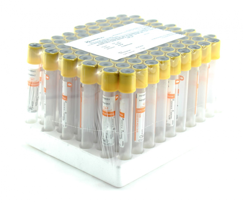 Вакуумные пробирки для взятия венозной крови с активатором свёртывания и разделительным гелем - применяются при исследованиях сыворотки в клинической химии, серологии, иммунологии. Пробирки содержат наполнитель оксид кремния (SiO2), который также называют кремний или кремнезем, его напыляют на внутренние стенки пробирок. Микронизированный кремнезем действует на тромбоцитарное звено и плазменный гемостаз. Активатор в пробирке химически инертен, нерастворим в воде, органических растворителях, стойкий к действию ферментов и клеток крови. Благодаря наличию наполнителя в пробирке - резко ускоряется процесс свертывания крови, которая полностью сворачивается за 30 минут, что значительно сокращает время приготовления биологической пробы.