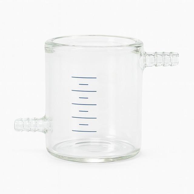 Реакционный стакан 50 мл, с рубашкой, стекло, градуированный. это лабораторная посуда с двойной стенкой, через которую циркулирует нагревающая или охлаждающая среда. Стакан изготовлен из прочного боросиликатного стекла. Особенностью является наличие рубашки с патрубками для подключения теплоносителя, обеспечивающей стабильный температурный режим реакции в небольшом объёме.