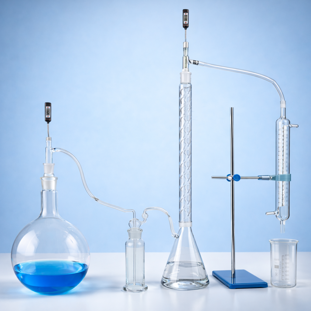 Удачная компоновка мощной очистительной стеклянной части и стеклянного перегонного куба позволяет получать кристально чистый продукт не требующий повторной перегонки.