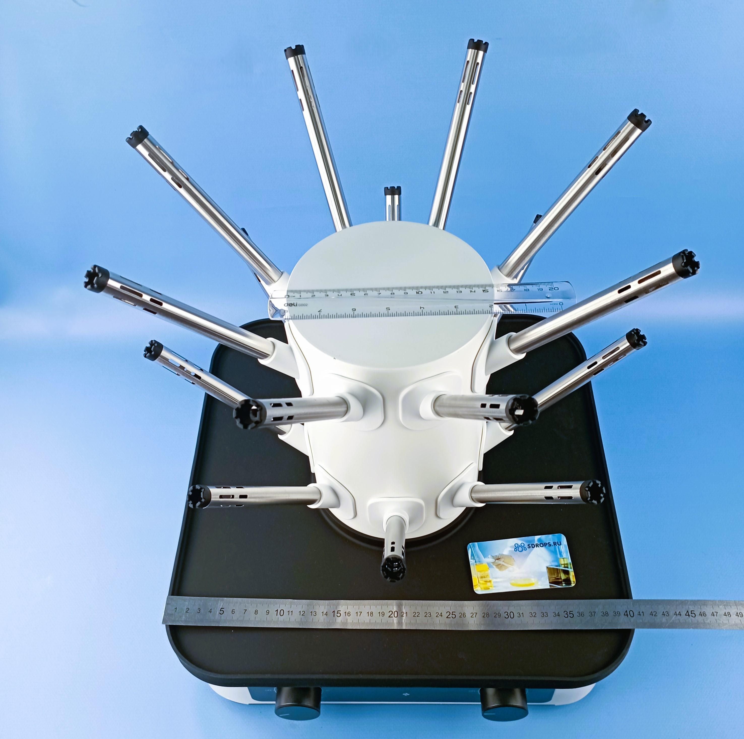 Одновременная сушка нескольких типов посуды благодаря «ветвящейся» системе воздуховодов и направленному обдуву внутри сосуда. Это экономит рабочее время и место на столе.Контроль процесса: вручную регулируемые время и мощность, три понятных режима на поворотных ручках. Легко подстроить под тонкое стекло или толстостенные колбы.