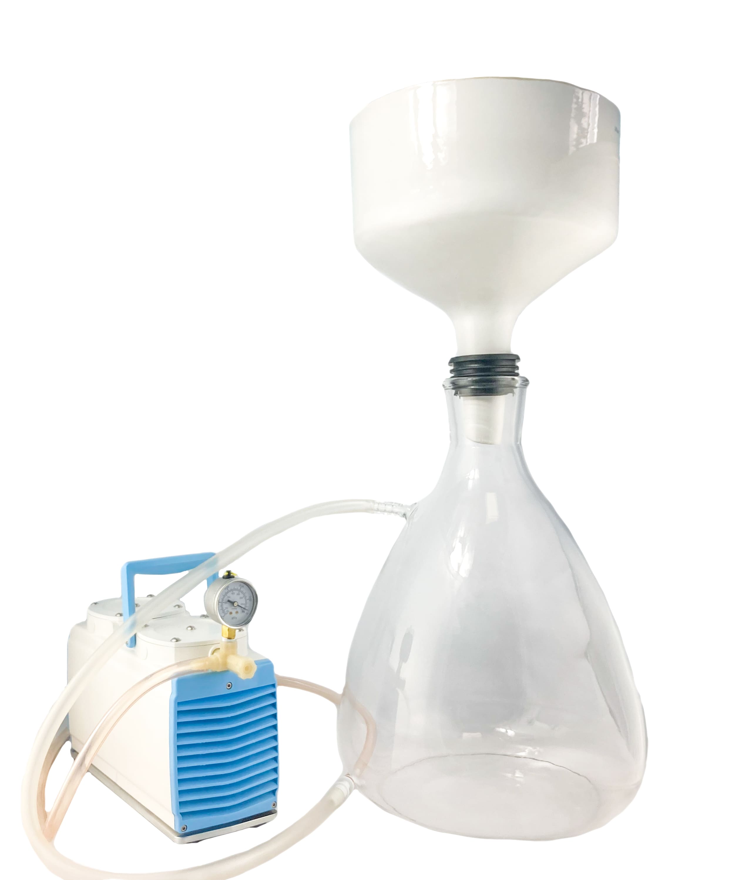 Универсальная вакуумная установка для сверхбыстрого фильтрования предназначена для эффективной и точной вакуумной фильтрации, которая является важнейшим процессом в различных областях научных исследований и экспериментов. Воронка большой емкости диаметром 300 мм вмещает большие объемы, обеспечивая значительную пропускную способность. Вакуумный насос внутри колбы создает отрицательное давление. Это вакуумное давление эффективно протаскивает жидкий компонент смеси через фильтрующий материал, помещенный в воронку, оставляя твердый остаток на поверхности фильтра. Фильтрат, теперь уже лишенный твердых частиц, собирается в колбе Бунзена. Этот прозрачный фильтрат можно легко извлечь для дальнейшего анализа или обработки.
