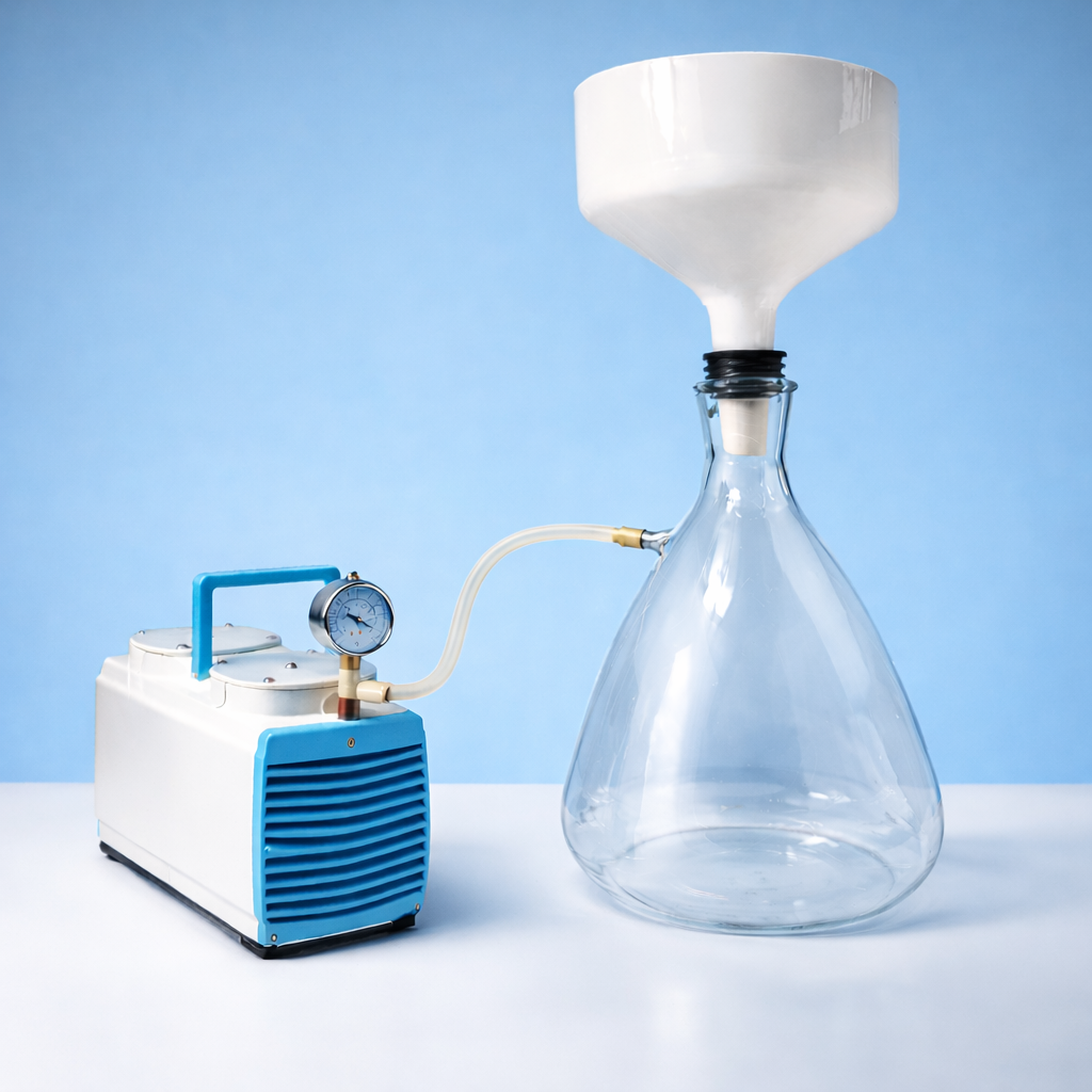 Универсальная вакуумная установка для сверхбыстрого фильтрования "Водопад-1" предназначена для эффективной и точной вакуумной фильтрации, которая является важнейшим процессом в различных областях научных исследований и экспериментов. Воронка большой емкости диаметром 150 мм вмещает большие объемы, обеспечивая значительную пропускную способность. Вакуумный насос внутри колбы создает отрицательное давление. Это вакуумное давление эффективно протаскивает жидкий компонент смеси через фильтрующий материал, помещенный в воронку, оставляя твердый остаток на поверхности фильтра. Фильтрат, теперь уже лишенный твердых частиц, собирается в колбе Бунзена. Этот прозрачный фильтрат можно легко извлечь для дальнейшего анализа или обработки.