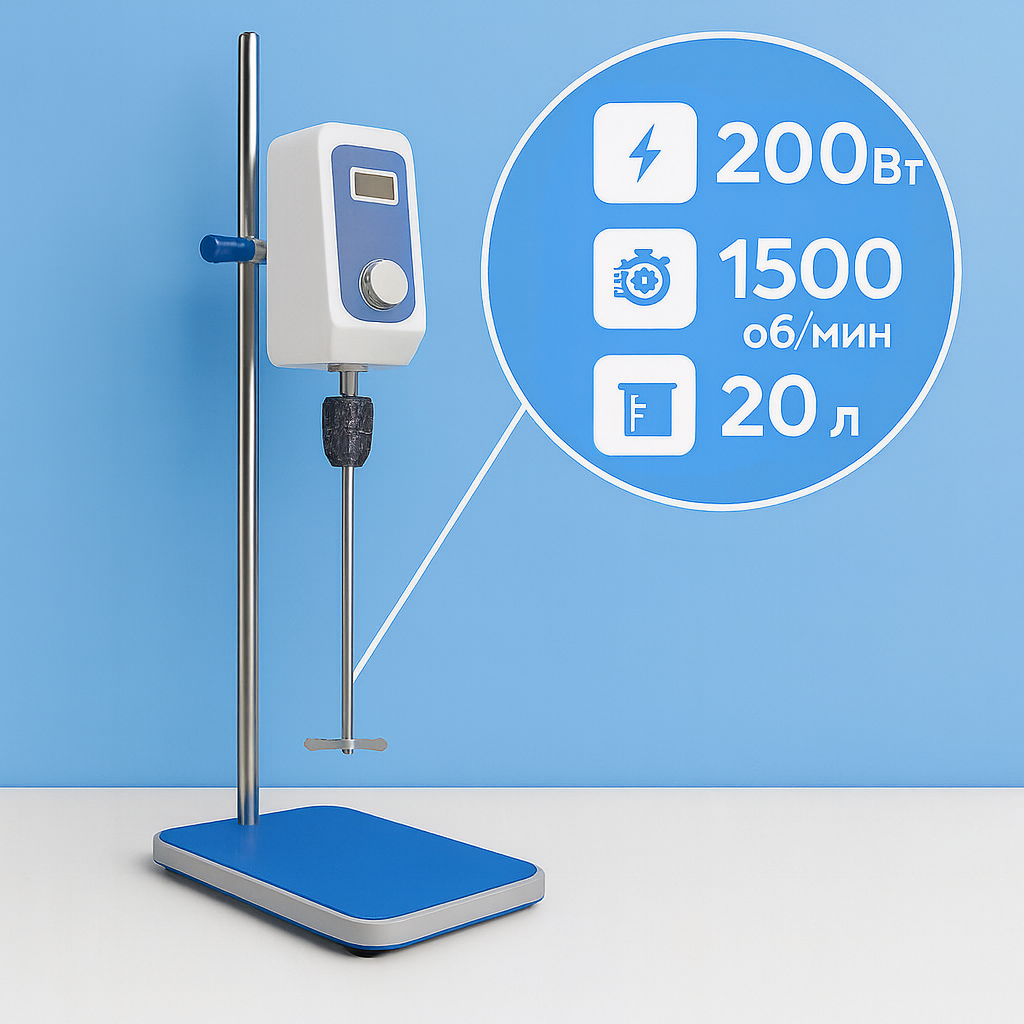 Брали эту верхнеприводную мешалку в лабораторию. Комплектация полная, всё привезли. Удобно что есть дисплей. Можно устанавливать нужные рабочие параметры в зависимости от задач.